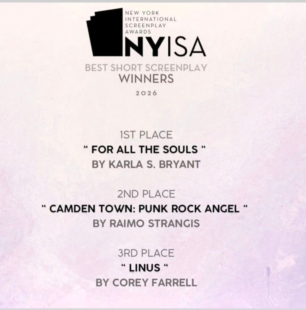 My short script, Camden Town: Punk Rock Angel was a 2nd place winner at this years New York International Screenplay Awards! 🙏